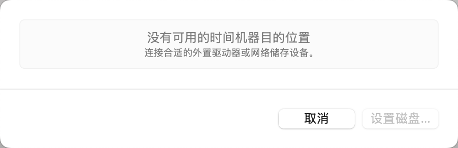 但时间机器提示没有可用的时间机器目的位置