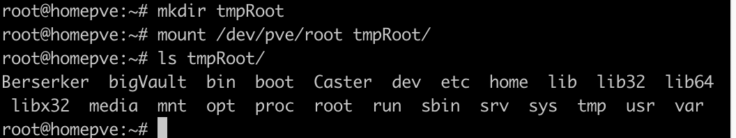 mount /dev/pve/root tmpRoot